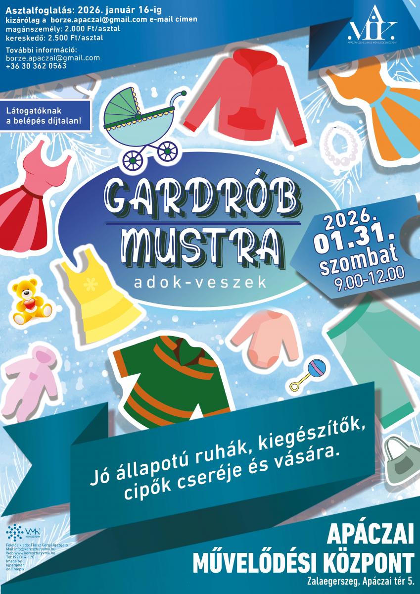 Árusító asztal és helyfoglalás 2026. január 16-ig kizárólag a borze.apaczai@gmail.com e-mail címen.