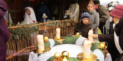 A Szent István szobornál felállított betlehemnél az Évgyűrűk Nyugdíjas Klub ünnepi műsorral várja az érdeklődőket.