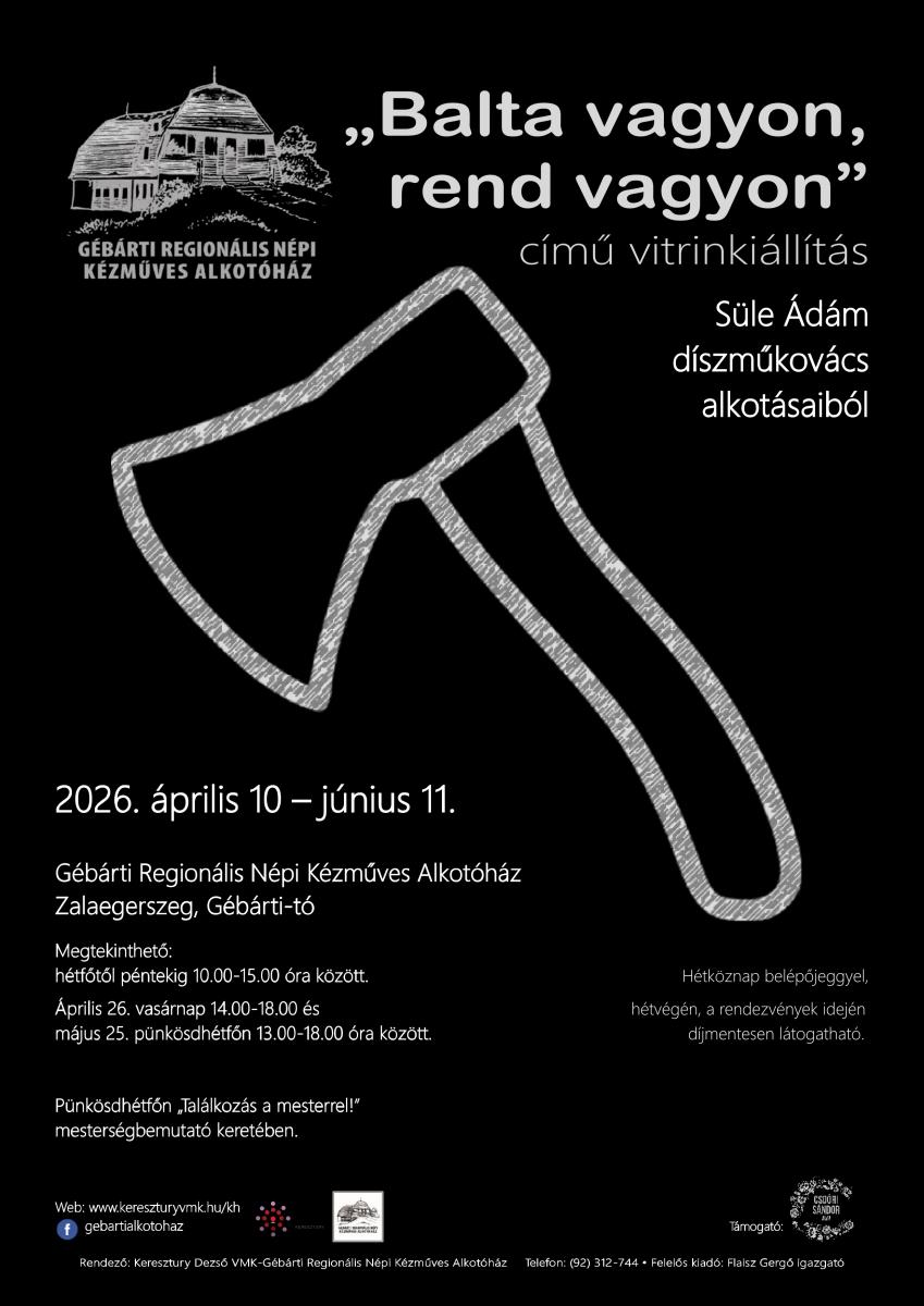 Helyszín: Gébárti Regionális Népi Kézműves Alkotóház (8900 Zalaegerszeg, Gébárti-tó 15470/A. hrsz.)