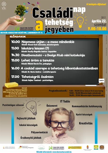 A program a Zalai Civil Életért Közhasznú Egyesület szervezésében, a Nemzeti Tehetség Program keretén belül valósul meg.