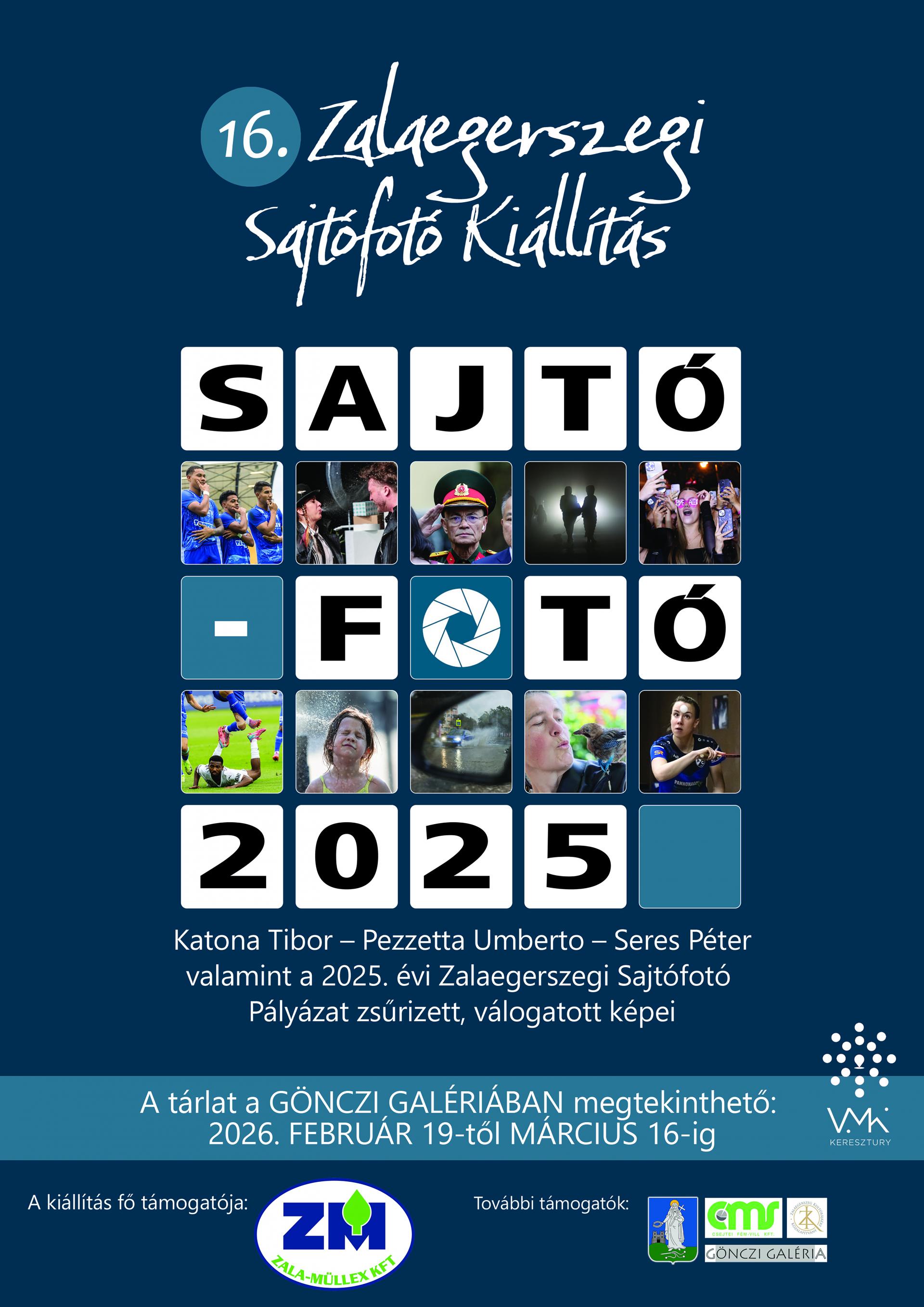 A 16. Sajtófotó Kiállítás megnyitója és a fotópályázat díjátadója. Ifjúsági kategóriában III. helyezett Kovács Dávid, II. helyezett Horváth Benjamin, I. helyezett Bedics-Németh Kata. Felnőtt kategóriában III. helyezett Ekler László, II. helyezett Rohonczi Anett, I. helyezett Tóth János. A sajtófotósok díját Marancsics Erika kapta. (VMK Gönczi Galéria, 2026.02.19.) – Fotó: Tóth János